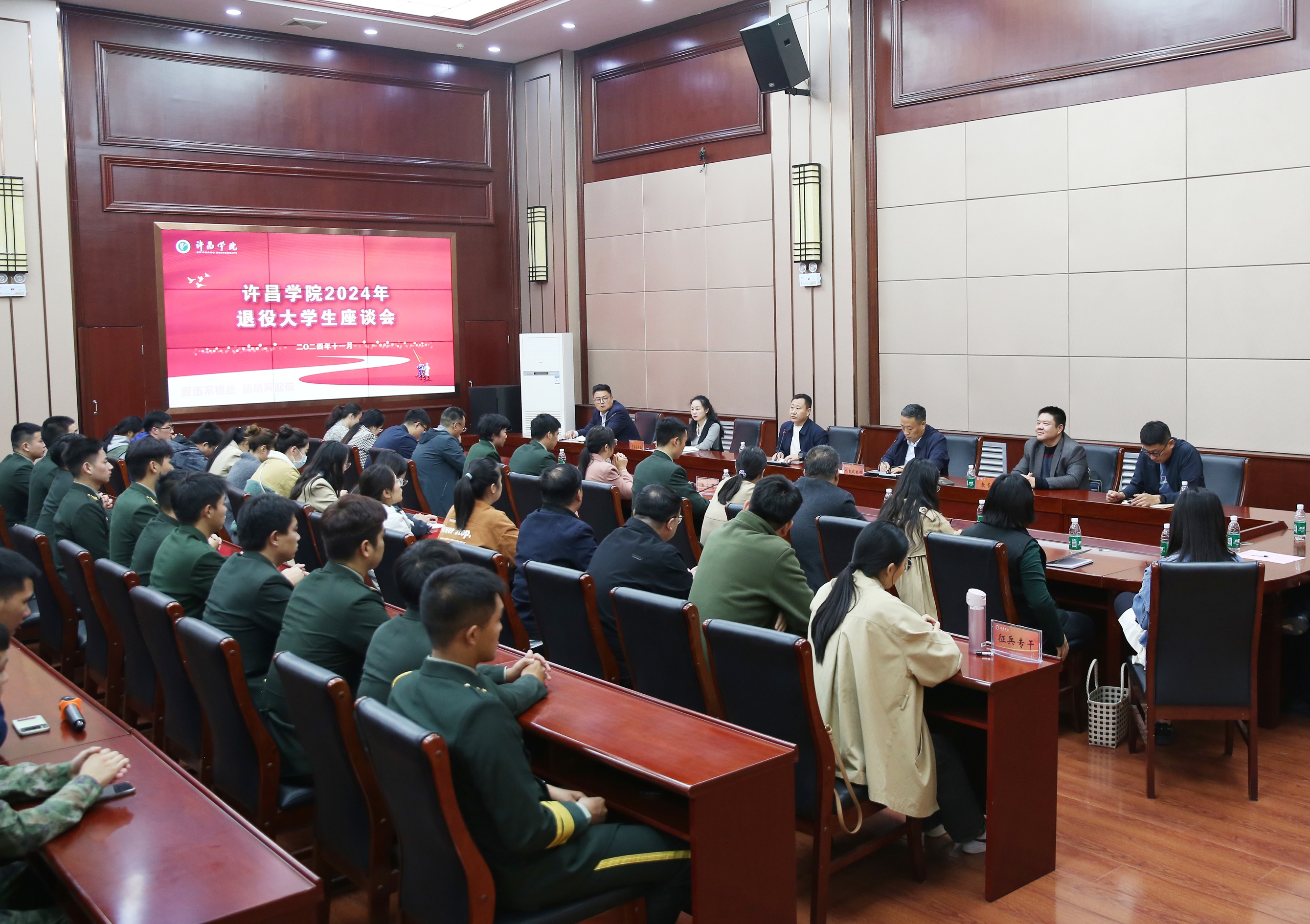 11月1日下午,威尼斯官网在学术会议大厅召开2024年退役大学生座谈会。校党委副书记孙海出席会议,学校相关职能部门负责人,学院(社区)党委副书记、征兵专干、全体2024年复学和新入学退役大学生参加座谈会,会议由校人民武装部部长周银超主持。