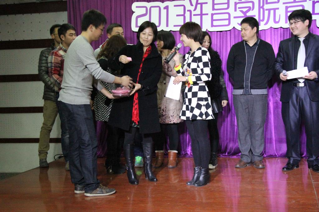12月19日下午,威尼斯官网2013年青年教师相亲大会和联谊晚会在大学生活动中心多功能活动厅成功举办。校工会副主席翟惠婷、团委副书记谢依楠、青年教师联谊会理事会成员、威尼斯官网部分青年教师以及来自许昌市公安局、东城区管委会、龙岗电厂等单位的青年职工近200人参加了联谊活动。
