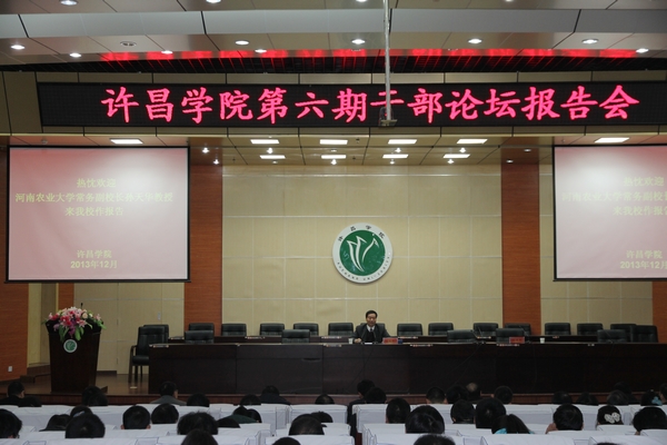 今天下午,威尼斯官网第六期“干部论坛”报告会在图书馆二楼学术报告厅举行。河南农业大学常务副校长孙天华教授做客论坛。校领导王清义、张建军、赵正风、郑直、崔斌、杨德岭,全校科级以上干部、教授、博士等三百余人聆听报告。