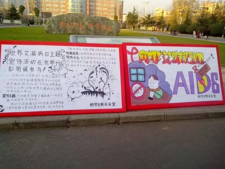 据悉,为了提高公众对人类免疫缺陷病毒(HIV病毒)引起的艾滋病的认识,共同对抗艾滋病在全球传播,1988年1月世界卫生组织确立每年的12月1日为世界艾滋病日,号召世界各国和国际组织在这一天举办各种活动,宣传和普及预防艾滋病的知识。每年艾滋病日都会设一个主题,通过宣传,唤起人们对艾滋病患者的同情和理解,共同对抗艾滋病。今年的宣传主题为“行动起来,向‘零’艾滋迈进——共抗艾滋共担责任 共享未来”。(图片由校团委提供)