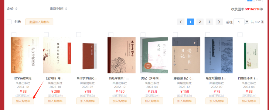 点击任意出版社,或者根据分类界面点击进入书目列表页,点击您心仪的图书加入采购即可。