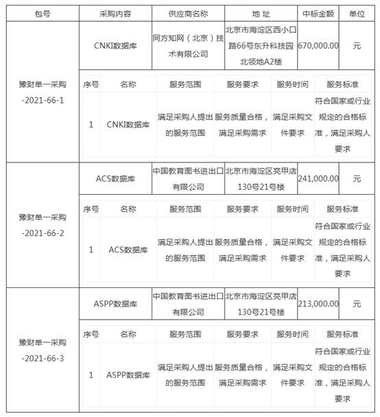 本次中标公告在《河南省政府采购网》上发布,成交公告期限为1个工作日 。