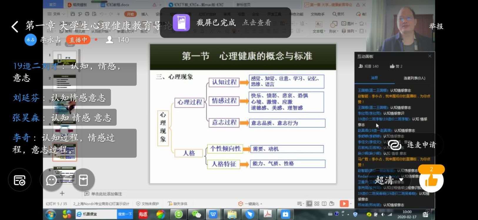 马克思主义学院院长寇鸿顺介绍,除了常规课程,该院把全国同舟共济、众志成城,打响疫情阻击战的鲜活素材和动人故事转化为思政课的教育教学资源,面向全校学生,精心谋划“思政第一课”,打造了《以习近平同志为核心的党中央应对疫情决策部署》和《从突发事件应急管理的“中国速度”看中国特色社会主义的制度优势》两个专题,全力上好“特殊时期”思政课,帮助同学们理清本次疫情的基本概况以及党和国家采取的应对措施,引导大家树立爱国、科学、法治的思维和精神。