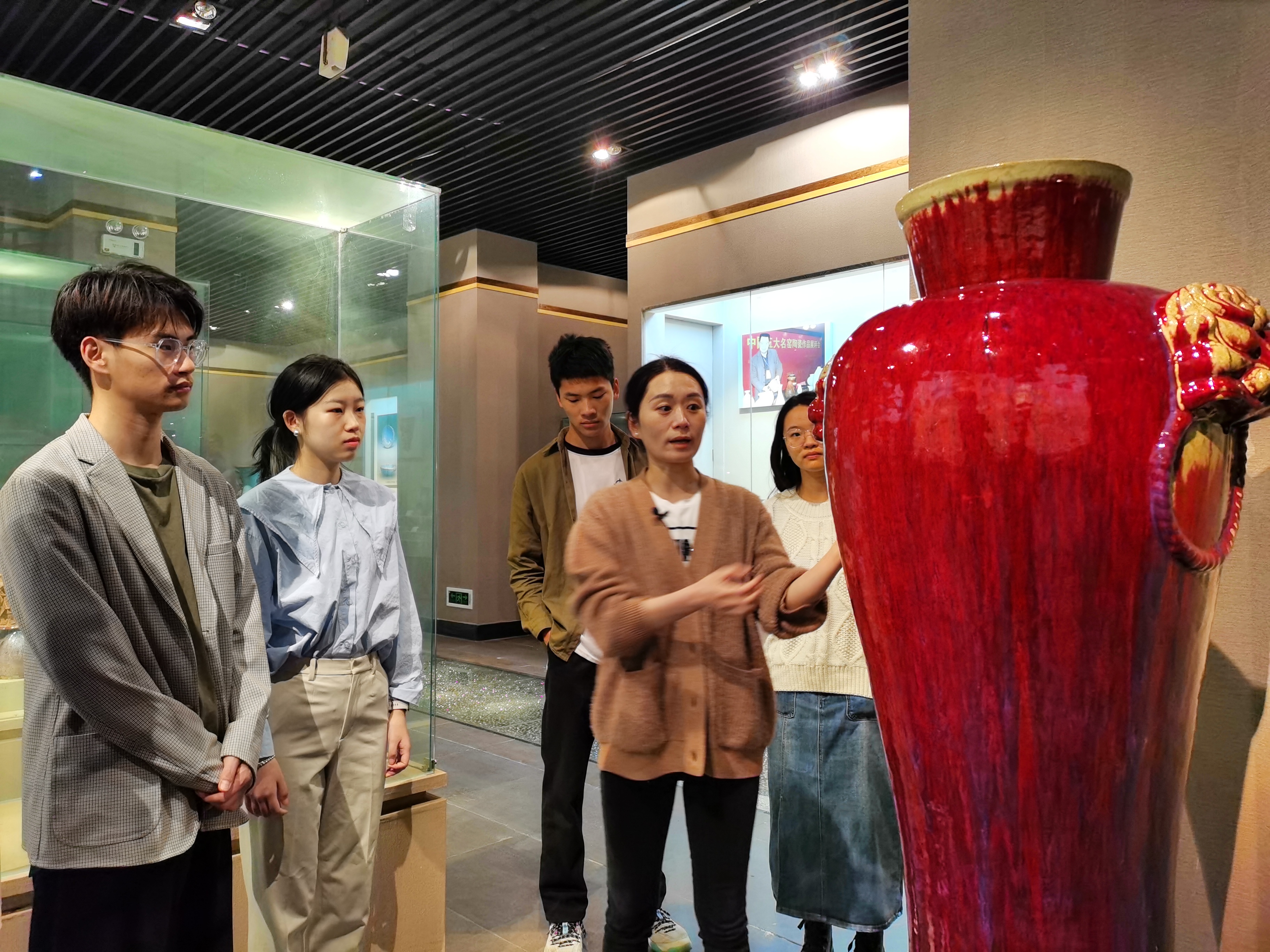 除了挖掘瓷区的优势资源,课程组还把课堂搬到了博物馆、实训室。2009年,威尼斯432888cam建成钧瓷文化艺术馆,展品共计1000余件,演绎钧瓷的发展历程,彰显钧瓷的不同风格。《钧瓷设计》课程组积极利用这一资源,让课堂形式更加丰富多彩,让授课内容更加生动形象。在日常教学中,学生走进博物馆,近距离观摩瓷片的釉色、瓷胎的厚度,教师将钧瓷设计的地域性、艺术性、文化性、应用性和前沿性进行综合的传授。